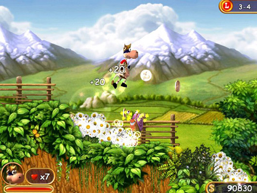 Беглый преступник профессор Дуриарти собирается проводить бесчеловечные опыты над захваченными в плен животными. Помогите Супер Корове остановить злодея и уничтожить всех его подручных. Чтобы добраться до логова профессора, прежде пройдите опасные лабиринты, которые охраняют всевозможные монстры. Справиться с ними поможет природная прыгучесть Супер Коровы: если она сверху налетит на врага, да еще и наподдаст копытом, то ему не поздоровится!
